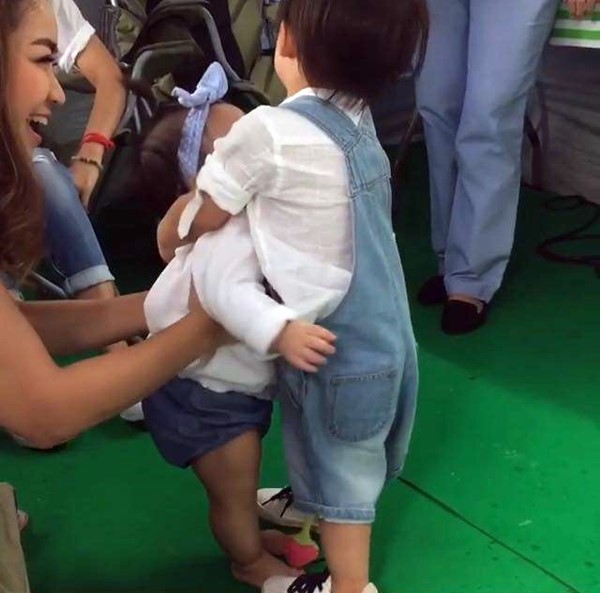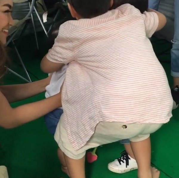 ก็เข้าไปกอดรัดด้วยความเอ็นดู คราวนี้ พี่ออก้า เลยวิ่งไปกอดน้องด้วยอีกคน
