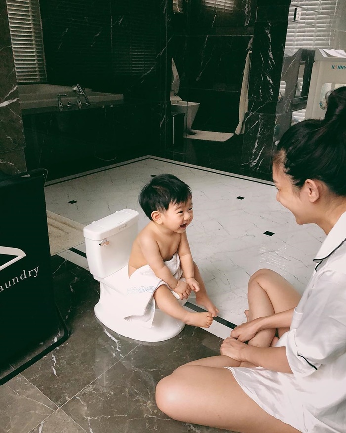 น้องอคิณ ลูกแม่ เนย โชติกา แจกยิ้มสดใส นั่งกระโถนเด็กครั้งแรก หนูแฮปปี้สุด ๆ ไปเลย ทำคุณแม่มองบน แซวดีใจเหมือนได้นั่งเครื่องเล่น