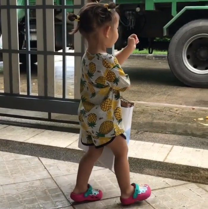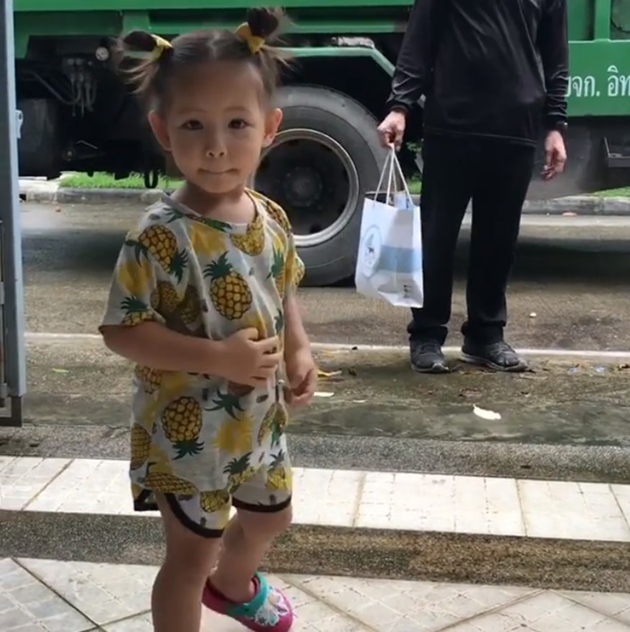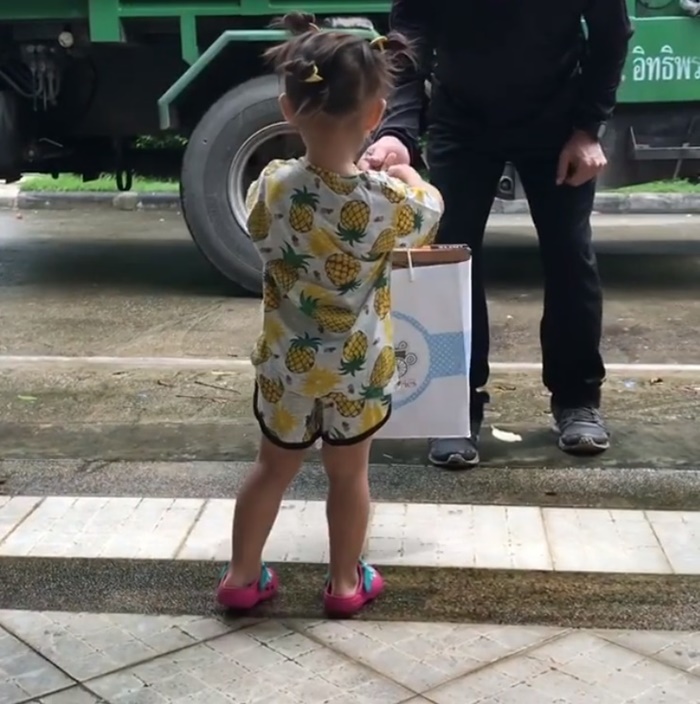 ได้เผยคลิปขณะน้องริชา ยืนถือถุงขนมมารอคุณลุงเก็บขยะ