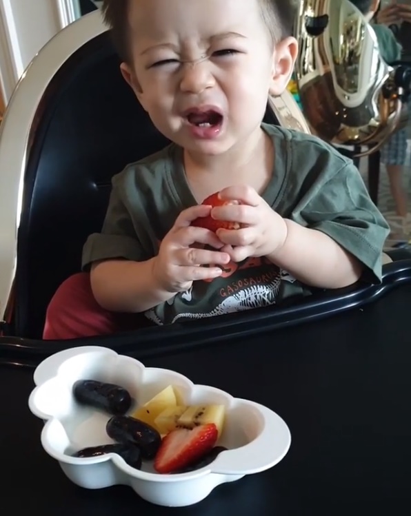 อย่างล่าสุดคุณแม่ชมพู่ ก็ได้โพสต์คลิปวิดีโอ น้องสายฟ้า น้องพายุ ขณะกำลังกินผลไม้รวมมิตรหลากหลายชนิด ซึ่ง น้องพายุ ก็แอบเปรี้ยวนิด ๆ แต่กินอย่างแฮปปี้ แต่ดูท่าแล้ว น้องสายฟ้า จะไม่ปลื้มเจ้าสตรอว์เบอร์รีสุด ๆ เพราะมันช่างเปรี้ยวขัดใจมาก สุดท้ายถึงขั้นเทกระจาดทั้งจานเลยทีเดียว ไม่ปลื้มฮับผม