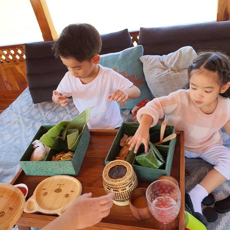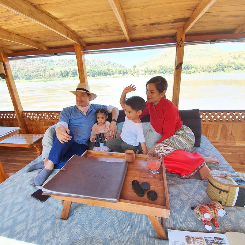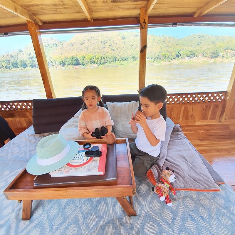 ซึ่งทริปนี้เป็นทริปครอบครัวใหญ่ เพราะมีคุณปู่ คุณย่า ไปเที่ยวด้วย และยังเป็นทริปทำบุญ ไหว้พระกันหลายวัดเลยทีเดียว ทั้ง วัดพระธาตุภูสี วัดเชียงทอง ซึ่ง น้องอลัน ก้มกราบพระได้แปลกแหวกแนวสุด ๆ เรียกว่าทุ่มสุดตัวจริง ๆ ลูก นอกจากนี้เด็ก ๆ ยังได้สนุกสนานกับการล่องเรือทานอาหารในแม่น้ำโขงด้วย