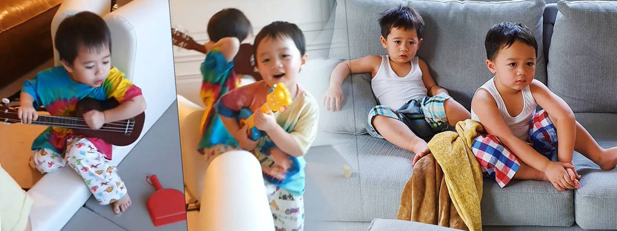 งานนี้น้องแฝดพากันโยกย้ายส่ายสะโพกกันยกใหญ่ แถมยังเอาอูคูเลเล่ของเล่น และไม้กวาดมาสีเป็นไวโอลินอีกต่างหาก เรียกได้ว่าน่ารักไร้เดียงสา ทำเอาพี่ ๆ แฟนคลับอมยิ้มไปตาม ๆ กัน ส่วนจะน่ารักแค่ไหน ตามมาดูกันเลย