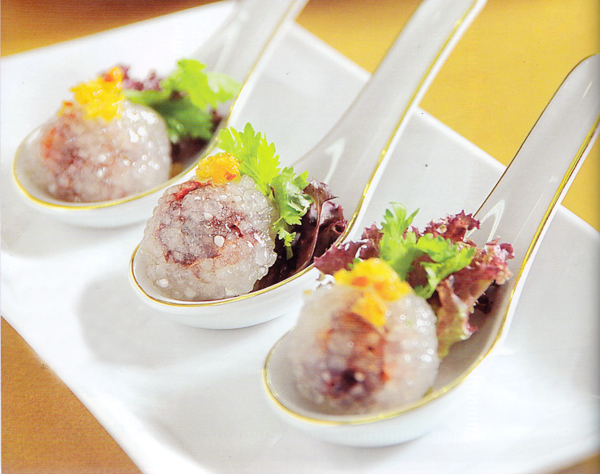 3.จัดเสิร์ฟใส่แก้ว แต่งด้วยบีทรูทต้มสุก