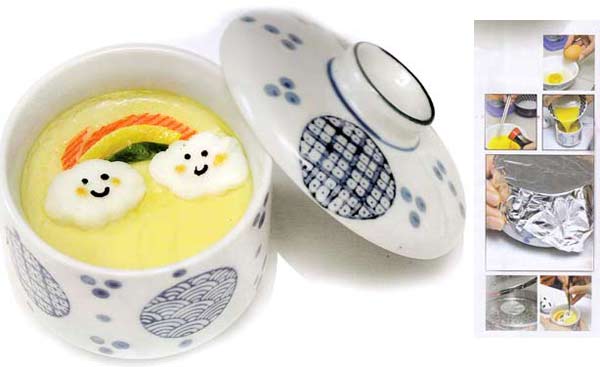 1.ตีไข่เข้าด้วยกัน เติมน้ำซุปปลาเพียงเล็กน้อย ปรุงรสด้วยโซยุ เกลือ น้ำตาลเล็กน้อย กรองไข่ด้วย กระซอนตาถี่