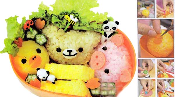 เมนูเบนโตะ (BENTO) ข้าวกล่องแสนน่ารักน่าหม่ำแบบญี่ปุ่น ที่แม้ลูกน้อยจะไม่ต้องหอบหิ้วข้าวกล่องไปโรงเรียนก็ตาม แต่ทำใส่กล่องใส่จานสวย ๆ ให้กินที่บ้านี่ล่ะค่ะ ต้องขอบอกว่าเรียกความสนใจจากเจ้าตัวเล็กได้ดีมาก ๆ จากของที่ไม่เคยยอมกิน อย่างแครอทหรือผักต่าง ๆ เมื่อมาทำเป็นรูปน่ารัก ๆ มีหน้าตายิ้มแย้มแล้วล่ะก็ตาลุกวาวเป็นประกายปิ๊งปั๊ง หยิบมาเคี้ยวกร้วม ๆ อย่างที่ทำเอาแม่ไม่อยากจะเชื่อสายตาทีเดียวค่ะ