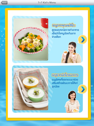 สำหรับแอพพลิเคชั่น 7+7 Kid\'s Menu เหมาะกับคุณพ่อคุณแม่ยุคใหม่ที่เน้นความสะดวกรวดเร็ว ประหยัดเวลาไม่จำเป็นต้องไปซื้อหนังสือเมนูอาหารมาดู เพราะสามารถดูเมนูอาหารได้จาก iPhone หรือ iPadซึ่งในปัจจุบันอุปกรณ์เหล่านี้กำลังเป็นที่นิยมของคนในครอบครัวและที่สำคัญแอพพลิเคชั่นตัวนี้ดาวน์โหลดฟรี! พร้อมอัพเดทเมนูอาหารใหม่ ๆเอาใจคุณหนู ๆ อยู่เสมอทุกเดือน!...... ว้าว ๆ เจ๋งขนาดนี้รับรองเจ้าตัวเล็กติดหนึบเมนูเด็ดของคุณเป็นแน่!!